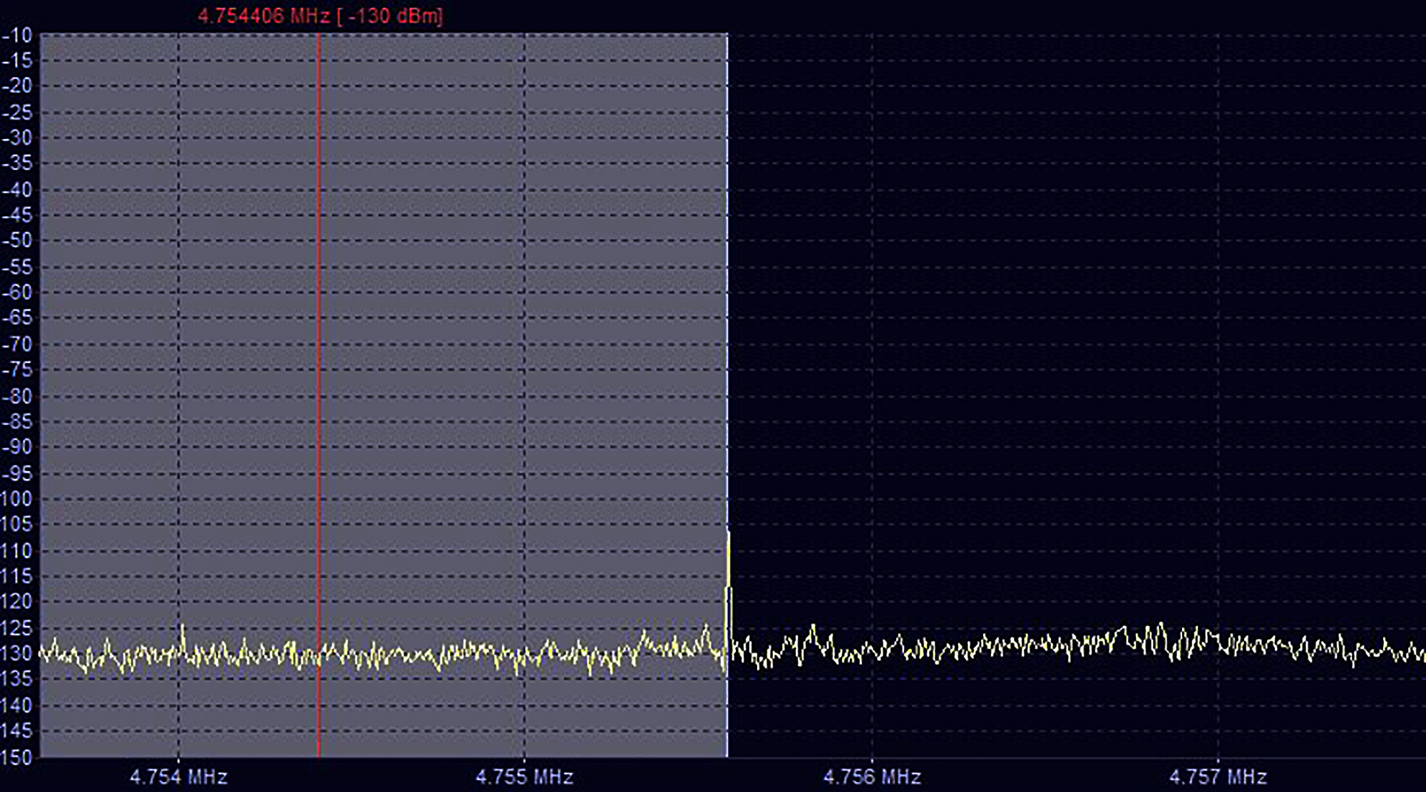 4755,57 kHz. Start of transmission 2001 UT. Winradio Excalibur PRO/CSO, Beverage 100 mt. > 60° Asia/Pacific.