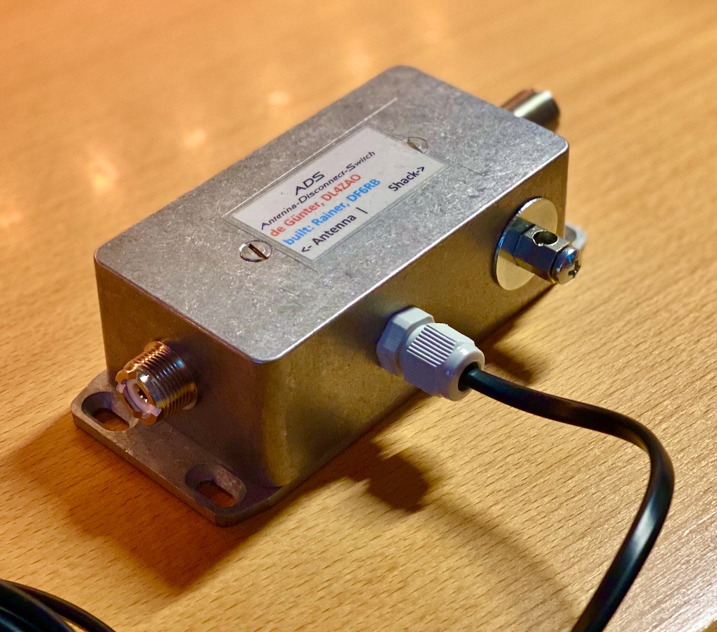 My new ADS – an antenna disconnect switch to protect sensitive radio equipment from atmospheric overvoltages is finished. Thanks to Günter, DL4ZAO for development and documentation and to Rainer Bernedo, DF6RB for a perfect job. https://dl4zao.de/_downloads/ADS.pdf