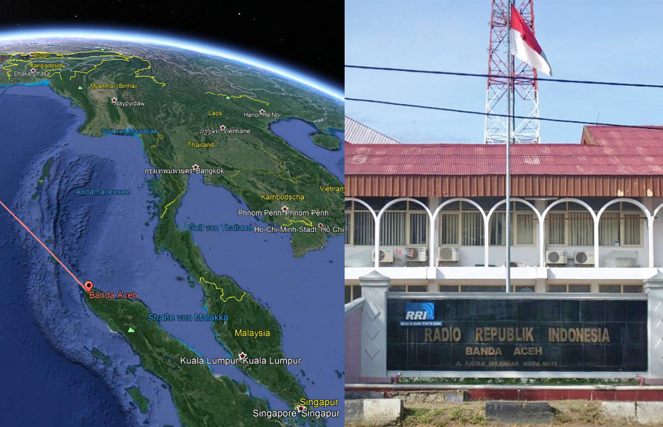 Yesterday evening I was once again able to listen to Radio Republik Indonesia Bada Aceh in Salzburg. The frequency 1251 kHz is usually occupied by the Qinghai Tibetan Service from Xining, China, (a nice reception in itself!) which only started transmitting yesterday after Banda Aceh had started broadcasting. This gave me the rare opportunity to listen to the Indonesian medium wave station from Sumatra almost undisturbed at the start of transmission at 22 UT.