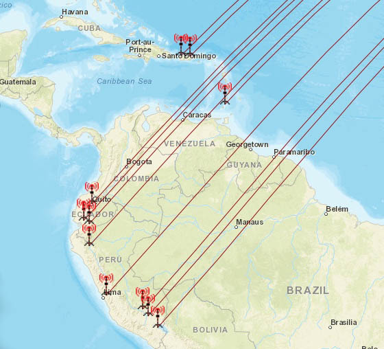 1360 0255 PRU Radio Sicuani, Sicuani (cus) 10768 km 1380 0325 PRU Radio Andina Juliaca, Juliaca (pun) 10802 km 1380 0340 PRU Radio Nuevo Tiempo, Lima (lim) 10959 km 1390 0344 PTR WISA, Isabela (PR) 7764 km 1400 0340 GRD Harbour Light of the Windwards,Carriacou(cpm) 7827 km 1430 0344 PRU Radio Visión/La Voz de Salvación, Jaen (caj) 10604 km 1470 0339 EQA Radio Ecos de Naranjito, Naranjito (gua) 10383 km 1490 0346 EQA Radio Santa MarÌa, Azogues (can) 10376 km 1490 0255 PRU Radio Dios es Amor/Cadena Sur, Cusco (cus) 10754 km 1510 0345 EQA Radio Monumental, Quito (pic) 10134 km