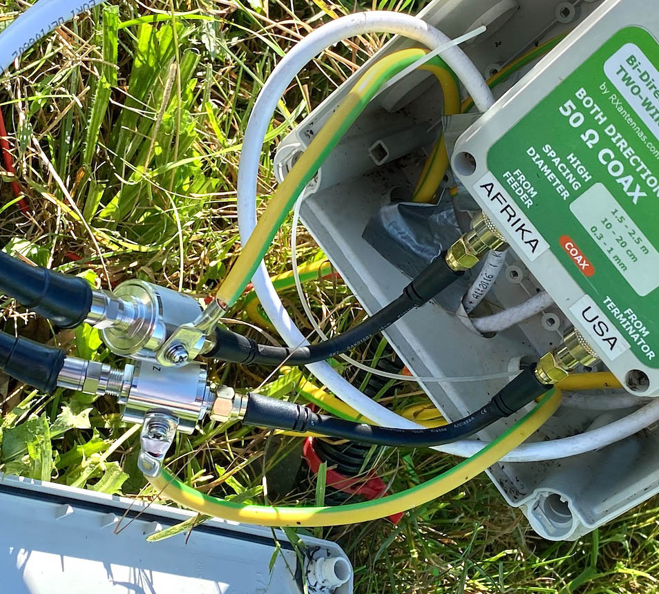 Yesterday I fitted two protection cartridges from Hamparts.shop to the Beverage for the winter instead of the large lightning chokes. I also made the terminals and supply line to the box from the Beverage more solid, so all the aerial work is done for this year. https://hamparts.shop/surge-protection-f-female.html