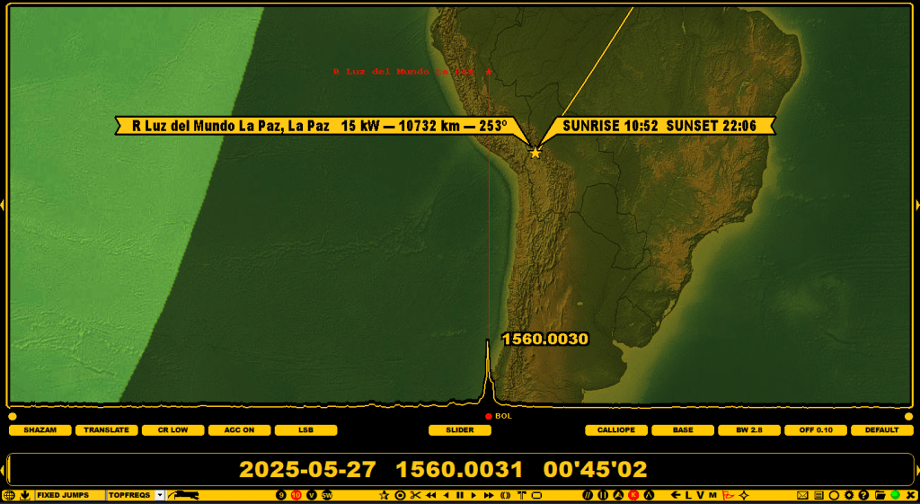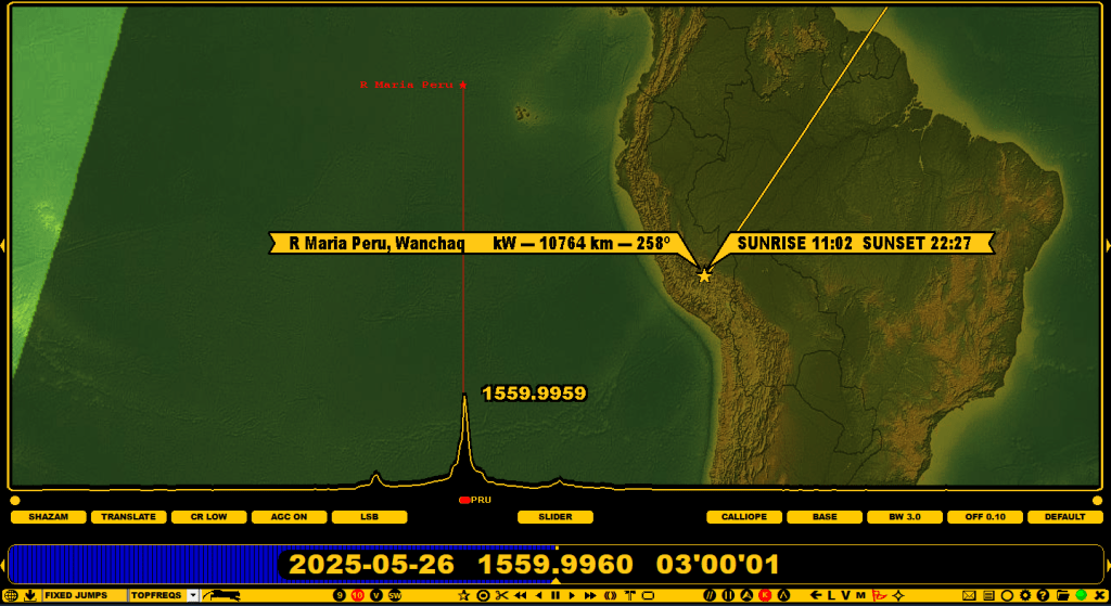 On 18 May 2025, very good signals from Peru could be heard again. Particularly noteworthy was the opening far to the south of the Andean country. Whereas in recent years I had rarely been able to hear stations from Arequipa, this area could now be heard with numerous loud signals.