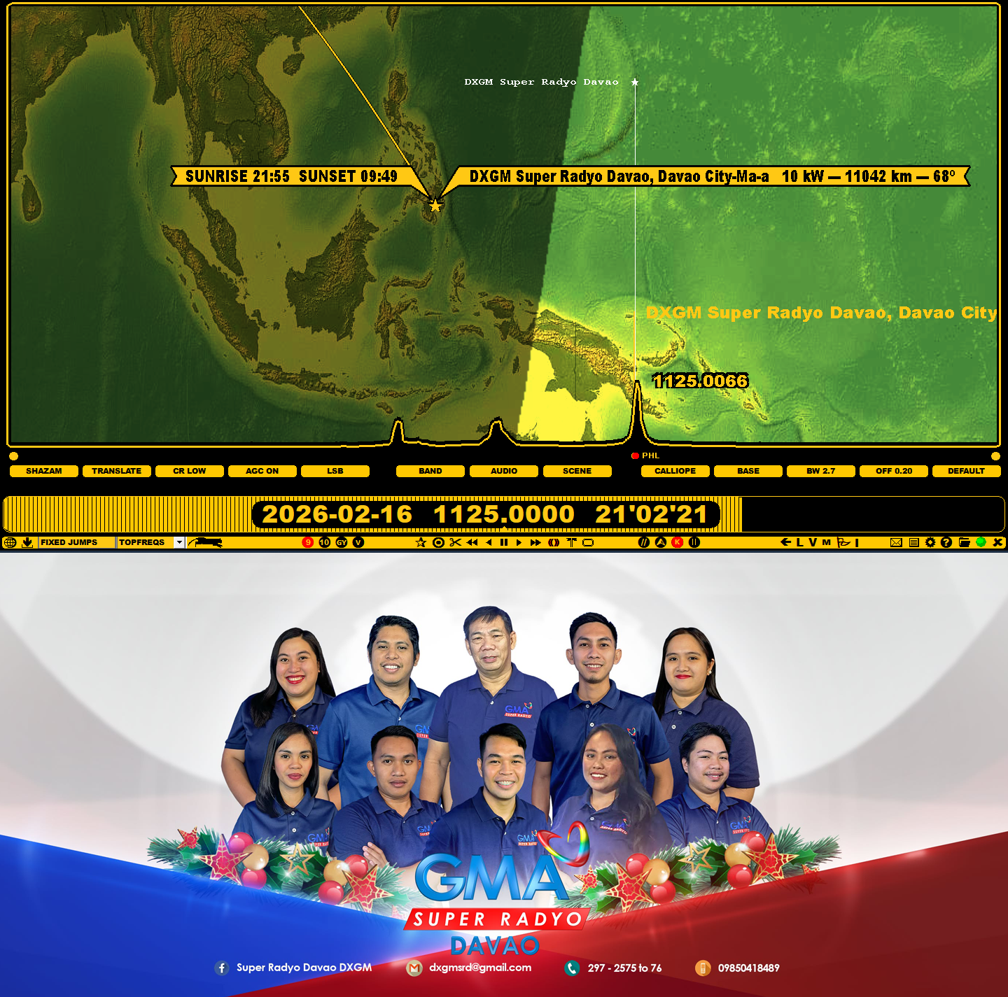 On 16 February 2026, at around 21 UT, I was able to receive DXGM Super Radyo from Davao, one of the world’s largest cities in terms of area, located in Mindanao, for a few minutes in Salzburg on 1125 kHz. The station confirmed reception very friendly a few hours later.